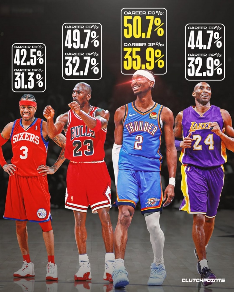 huatihui-古典打法!亚历山大生涯至今投篮&三分命中率均比乔科艾略高