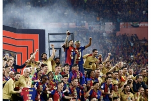 体育资讯4月27日讯 西班牙国王杯决赛,巴萨3-2击败皇马,获得冠军。